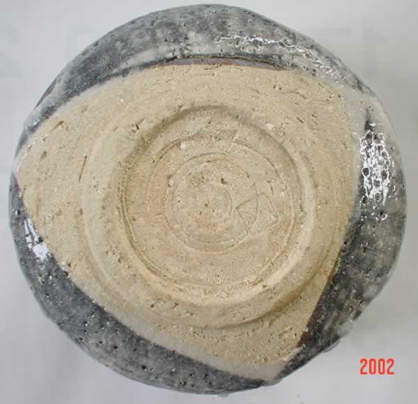 素焼前に鬼板を塗り模様を削り志野釉を掛けましたが、温度が低かった為釉薬が融けなかったようです